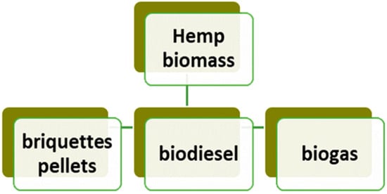 Schematic of the possibility of using hemp biomass for the production of biofuels [].