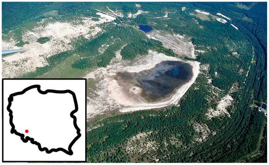 The Gilów TSF (see Figure 1) was decommissioned in 1977, and the process of afforestation is currently under way. In the years 1982–1986, the area was subjected to extensive biological reclamation works aimed at the ecological restoration of the land. Since May 1990, it has been utilized as an emergency retention reservoir for Żelazny Most [10], with water being directed for industrial purposes through the overflow tower.