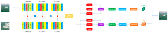 - Guo, D.; Wang, J.; Cui, Y.; Wang, Z.; Chen, S. SiamCAR: Siamese fully convolutional classification and regression for visual tracking. In Proceedings of the IEEE/CVF Conference on Computer Vision and Pattern Recognition, Seattle, WA, USA, 13–19 June 2020; pp. 6269–6277. [Google Scholar]