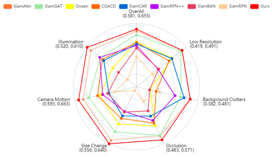 - Guo, D.; Shao, Y.; Cui, Y.; Wang, Z.; Zhang, L.; Shen, C. Graph attention tracking. In Proceedings of the IEEE/CVF Conference on Computer Vision and pattern Recognition, Nashville, TN, USA, 20–25 June 2021; pp. 9543–9552. [Google Scholar]