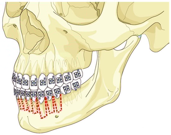 - Liou, E.J.W.; Huang, C.S. Rapid Canine Retraction through Distraction of the Periodontal Ligament. Am. J. Orthod. Dentofac. Orthop. 1998, 114, 372–382. [Google Scholar] [CrossRef] [PubMed]