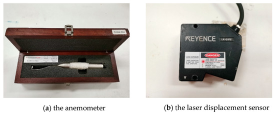 Wind tunnel tests are commonly used for studies on wind-induced vibration of bridges [34,35]. A wind tunnel test of a bridge section model was carried out in the wind tunnel laboratory of Chongqing University. The laboratory picture is shown in Figure 5. The wind tunnel is a straight-flow wind tunnel with a wind speed range of 0.5–35 m/s, and the degree of turbulence, velocity field deviation, and velocity stability are all less than 1%. The wind tunnel for the test was 15 m long, 2.4 m wide, and 1.8 m high.