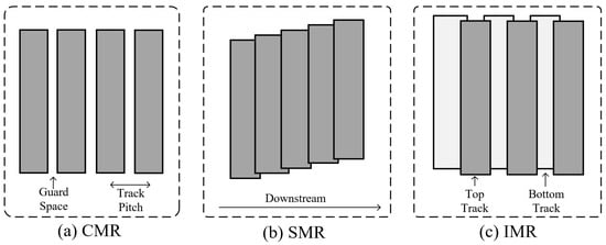 Track layout comparison for CMR, SMR, and IMR.