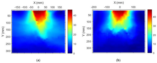 Here, m, given in Equation 1 represents displacements in the horizontal direction, n represents the displacements in the vertical direction, u(I,j) and v(I,j) represent the gray distribution functions of the image before and after deformation [45]. The pictures taken during the tests were analyzed with the GeoPIV-RG software and the displacements in the soil were obtained. In the program, certain points are selected in the first picture. The program has divided the first image entered as data into very small areas. FFT was then used to compare each area with subsequent images in sequence. As a result of the subsequent analyses, the program obtained image processing results such as vector displacement, horizontal displacement, vertical displacement, general displacement, and stress distributions of the soil from the movement of soil particles (Figure 4).