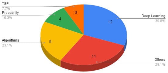 Figure 2 showcases the categorization of accepted works based on their respective categories. Analysis of the presented data reveals that the majority of works fall under the categories of algorithms, framework systems, and deep methods, collectively accounting for nearly 70% of the total. The remaining works are relatively evenly distributed across the remaining 30% of categories, which include methods based on the Travelling Salesman Problem, probability-based approaches, and other relevant literature.