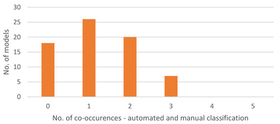 Co-occurrence of classifications (n = 70 randomly selected 3D models with five automated/five manual classifications each).