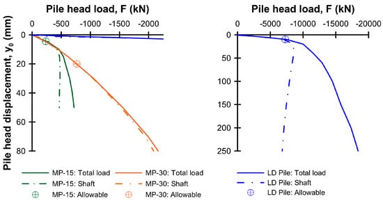 Comparison of MP and LD pile response under allowable load conditions.