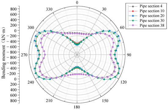 The cross-sectional bending moment of 21 ring pipe sections under different cases.