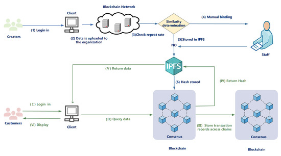 The user interaction of a digital copyright protection system consists of two main aspects: uploading and downloading data. The design and realization of these two key processes are described in detail below, as shown in Figure 2.