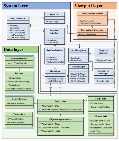 - The composition of the system for saving and loading workshop information is presented. It is abstracted into a data layer, a system layer and a viewport layer, and the functions of the classes within each layer as well as the inheritance and dependency relationships between classes are described. Object-oriented programming techniques based on object-oriented programming can increase the code’s reusability and optimize its performance.