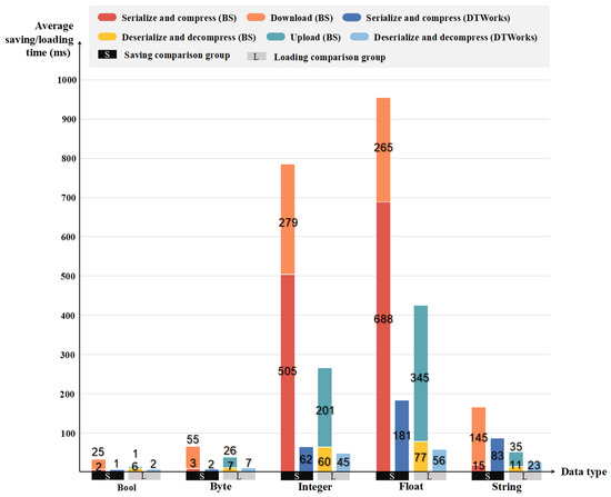 The test results for basic data type saving and loading efficiency tests based on the DTWorks architecture are displayed in Table 6, whereas the test results for the B/S architecture are displayed in Table 7.
