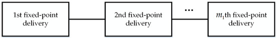 Suppose fixed-point delivery will be carried out during the LSB construction, and denote as the reliability of the th fixed-point delivery, . The individual fixed-point deliveries are independent and form a serial system. The reliability block diagram is shown in Figure 4.
