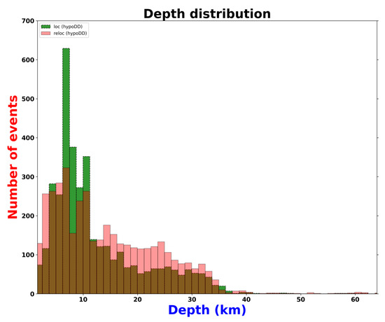 The best 1D local velocity models are displayed. Their error statistics are shown in both histogram and map projection in Figures S1–S12. The histograms depict the temporal (RMS) and spatial (ERH and ERZ) error distributions of the available data between the study’s starting [39] and final models. The newly developed velocity models provide us with a better concentration of seismic events, more realistic hypocentre depth ranges, and a proper understanding of local structure activation.