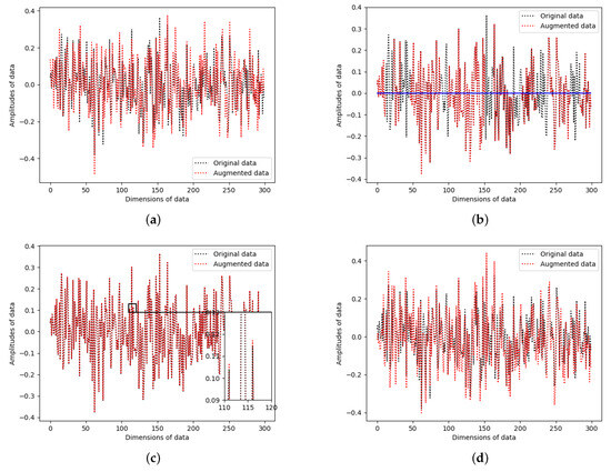 where is a function to select the final PWVA output from and , with probability p. The visualization of PWVA is shown in the lower right plot of Figure 1. In addition, four data augmentation strategies employed in Equation (1) are explained below.