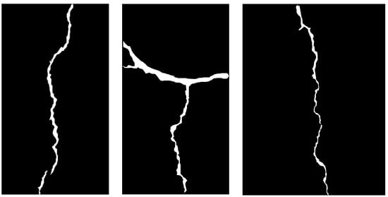 The Crack500 dataset—The Crack500 dataset was a pavement crack dataset, including 3368 images captured using a cell phone on the main roads of Temple University, USA, sized either 1440 × 2560 or 2560 × 1440 pixels. Additionally, this dataset was divided into training datasets and testing datasets by the author. It had 1896 images in the training dataset and 1124 images in the testing dataset.