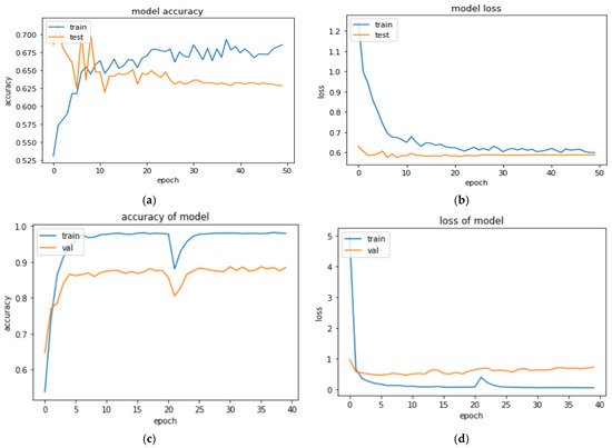 Figure 8, our training and validation accuracy continue to improve without reaching a point where the curve becomes stable. This result supports our prior prediction that the loss of features due to occlusion could make it difficult for the masked model to learn. The models are trained for 40 epochs, and we do not make any drastic weight changes to our model layers. It should be noted that the VGG-16 model’s layers are still frozen at this point, and it is only being used as a simplistic feature extractor. Our model has a validation accuracy of roughly 96%, which is a 6% improvement over our previous model, as seen in the preceding output. Overall, compared with our first basic CNN model, this model has a 24% higher validation accuracy. This demonstrates how effectively the proposed Conv-mixer model is implemented and improved in this paper.