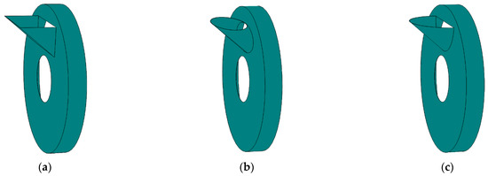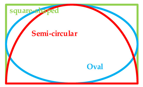 Three types of feed openings were designed, as shown in Figure 11, namely, square, oval, and semi-circular. The inlet areas of the three forms were 0.15, 0.1174, and 0.1178 m2, respectively.