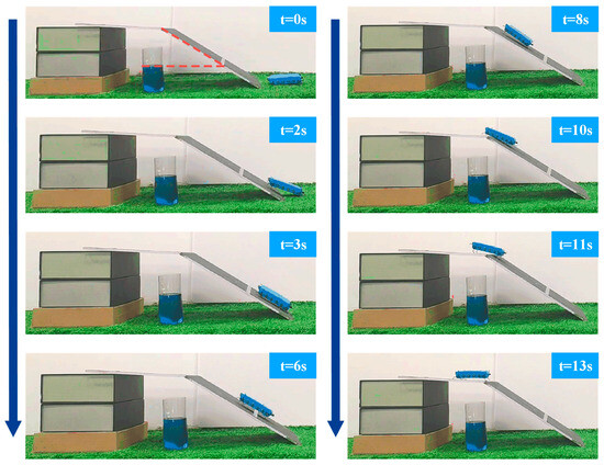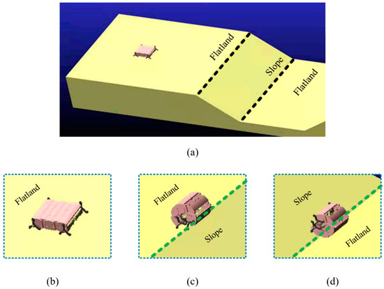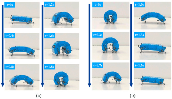 As an important branch of robotics, mobile robots are an integrated system that incorporates environmental perception [1,2,3,4,5], dynamic decision-making and planning [6,7,8], behavior control and execution [9,10,11,12], and other functions. Owing to its good obstacle-crossing capability, mobility, and stability, it has broad application prospects in emergency rescuing, military reconnaissance, and scientific exploration [13]. According to the mode of movement, traditional mobile robots can be classified into wheeled mobile robots [14,15,16,17,18], legged mobile robots [19,20,21], and tracked mobile robots [22,23]. Wheeled mobile robots are characterized by a simple structure [14,15], reliable control [14,16,17,18], and faster moving speed [15]; however, their obstacle-crossing capability is poor in complex terrains such as stairs and rugged roads. Legged mobile robots have the advantages of strong obstacle-crossing capability and terrain adaptability [20,21]; however, they feature a complex leg structure, difficult controllability, and low movement speed. Tracked mobile robots demonstrate good obstacle-crossing capability [22] and reliable control [23]; however, their bulky structure results in low traveling speed, large power consumption, and damage to the ground.