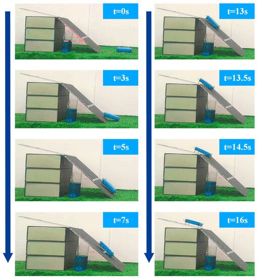 Therefore, the chord length of the wheel-leg is 13.27 mm ≤ R ≤ 20.43 mm. When the step height is 14 mm, the chord length of the wheel-leg is 17 mm. The obstacle crossing height is 1.13 times the chord length. For steps with common size, the wheel-leg can finish obstacle crossing.