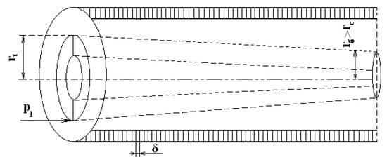 If the pressure p along the length of the channel l and with a variable radius rt is equal to the pressure change Δp, to solve the problem of the mechanics of the homogeneous medium on the basis of the first Equation (1) and taking into account the pressure forces , and the force acting on the side surface is equal to , then the pressure drop can be written in the following form, kPa: