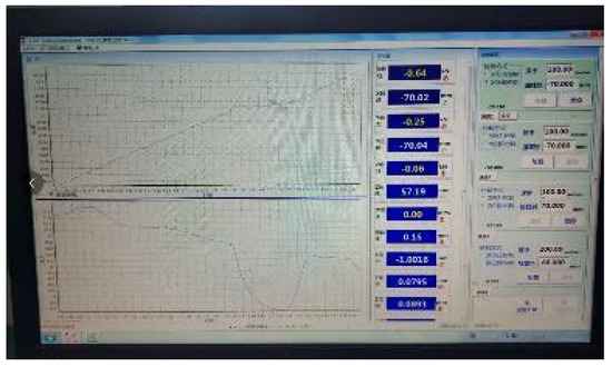 The computer can display and record the load, displacement, deformation, and other parameters generated during the experiment in full digital real-time, and draw the results into a test curve, as shown in Figure 9. The system can collect and store test conditions, sample parameters, and test data. The test process has protection functions such as overload and setting conditions.