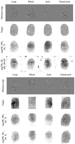 - Kim, H.; Cui, X.; Kim, M.G.; Nguyen, T.H.B. Reconstruction of Fingerprints from Minutiae Using Conditional Adversarial Networks. In Proceedings of the IWDW’18, Chengdu, China, 2–4 November 2019; pp. 353–362. [Google Scholar]