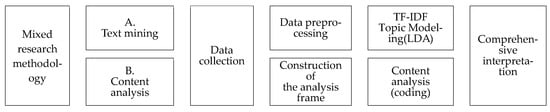 Text mining is a method that extracts semantic information by effectively processing unstructured data. It falls within the realm of natural language processing, a subfield of AI, and aims to uncover associations between topics and concepts by analyzing linguistic connections within textual data. Through quantitative analysis of word types, frequencies, and semantic relationships in large volumes of text, text mining unveils the characteristics and hidden patterns within the data [30,31,32]. This approach enables the objective analysis of educational data from multiple perspectives, shedding light on research topics and trends. Two key techniques in text mining are frequency analysis using TF-IDF and topic modeling using LDA [33,34,35].