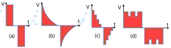 The most standardized and widely used waveform is the rectangular wave pulse, which can be characterized by the parameters listed in Table 5 [] and is graphically depicted in Figure 8.
