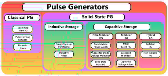 - Redondo, L.M. Basic concepts of high-voltage pulse generation. In Handbook of Electroporation; Springer International: Cham, Switzerland, 2017; Volume 2. [Google Scholar] [CrossRef]