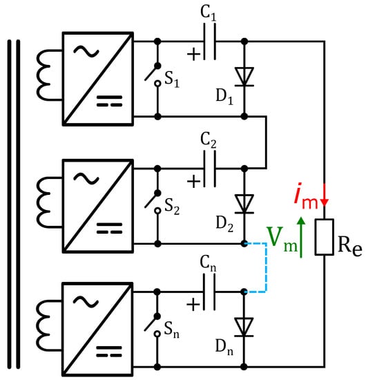 - Rezanejad, M.; Sheikholeslami, A.; Adabi, J. Modular switched capacitor voltage multiplier topology for pulsed power supply. IEEE Trans. Dielectr. Electr. Insul. 2014, 21, 635–643. [Google Scholar] [CrossRef]
