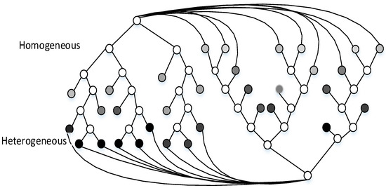 Principle of the adaptive and generic accelerated segment test. The nodes indicate the pixels in the current feature extraction region, and the shade of the leaf node color indicates the difference between the pixel point and the center point. The lighter color indicates that the two pixel points are more similar in gray value, and the darker color indicates that the two pixel points are more different in gray value. Reproduced with permission from [20], Spinger Nature, 2010.