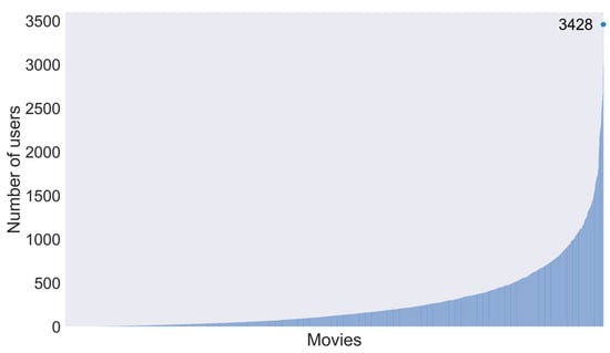 To prove this, we tried to adjust the ml-1m dataset. Figure 6 shows the number of users who watched each movie in the ml-1m dataset. The most watched movie was watched by 3428 of the 6040 users. We assumed that such popular movies were so popular that they would result in more indistinguishable user profiles. We created a dataset named ml-1m-3sig-out by excluding the 78 most watched movies that were outside 3 from the mean (movies watched by more than 1427 users); this operation removed 152,841 interactions from the dataset.