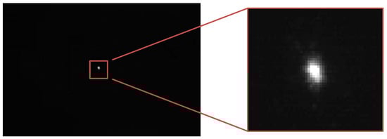 Another factor leading to components on the time axis and space axis is the diffusion of the optical imaging system and electronic imaging system. An experiment was conducted to demonstrate the impact process. A laser beam with upright incidence was directed at a flat target, and the laser spot on the target could be transformed into a small point with a size of 1 mm × 1 mm by adjusting the optical emission unit. We detected the laser spot by a CCD, and the detection result is shown in Figure 3.