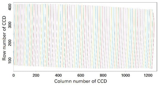 From Figure 7, it can be found that the curvature of the rightmost curve differs greatly from other curves because the highest sweeping voltage was not high enough and because the distortion of the electronic focusing system was more serious at the edges than at other positions. Fortunately, the streak signal hardly appeared at the edge of the image, so the distorted curvature had little effect on the experimental results.
