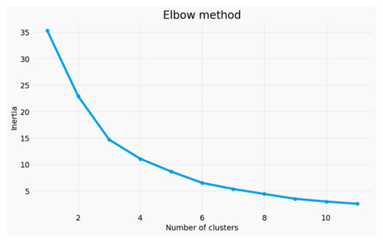 The elbow method (EM) and silhouette validation index are commonly used to determine the optimal number of clusters and evaluate the quality of clustering. The EM formula calculates the sum of distances within each cluster and considers the number of points in each cluster [19]. On the other hand, the silhouette validation index, introduced by Rousseeuw [20], measures the proximity of each data point to others within the same cluster and evaluates how well clusters are separated. It is based on the distances between points within and between clusters. The optimal value of k corresponds to the maximum silhouette value, indicating a better partition of the data points [21].
