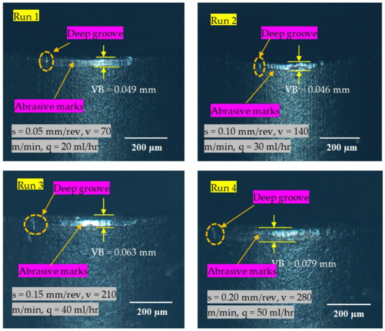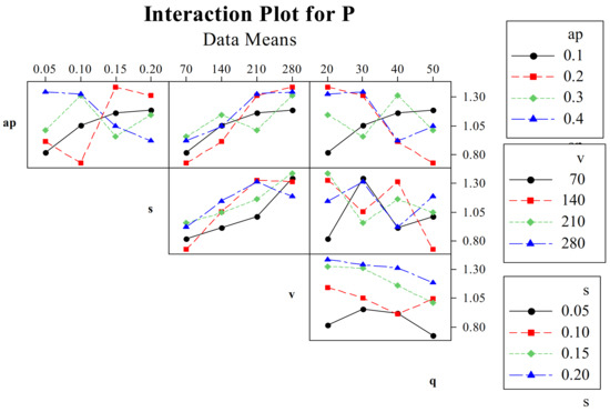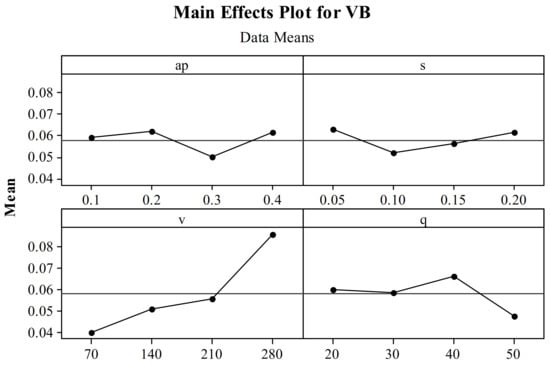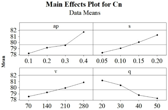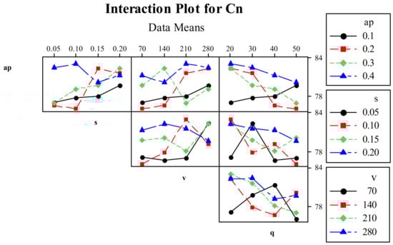 | ap (mm) | s (mm/rev) | v (m/min) | q (mL/hr) | VB (mm) | Ra (μm) | P (kW) | T (°C) | Cn (dB) | |
