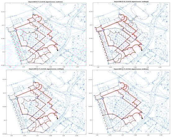 - Chondrogiannis, T.; Bouros, P.; Gamper, J.; Leser, U.; Blumenthal, D.B. Finding K-Dissimilar Paths with Minimum Collective Length. In Proceedings of the 26th ACM SIGSPATIAL International Conference on Advances in Geographic Information Systems, Seattle, WA, USA, 6–9 November 2018; pp. 404–407. [Google Scholar] [CrossRef]
