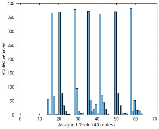 - When the vehicles directly use the Dj-kSP routes for each flow, calculating an optimal assignment. This optimal assignment is achieved using a GA engine.