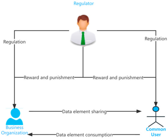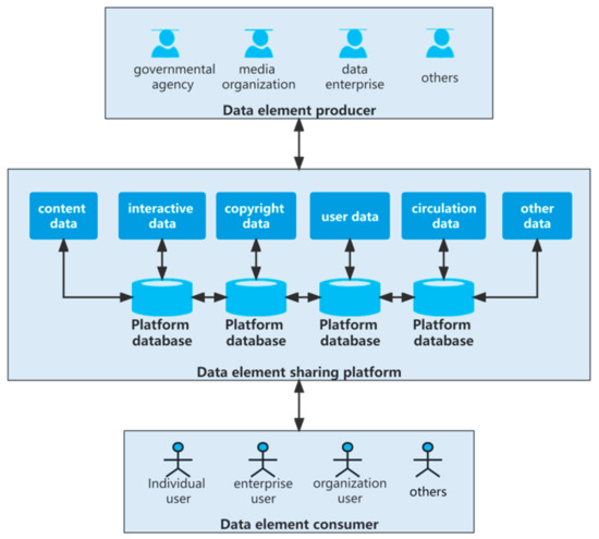 In the producer and consumer model, producers and consumers are clearly distinguished, and each plays a different role. The producers are mainly news media organizations, enterprises, etc., the main function of which is the production of data elements, and the consumers are mainly common users, the main function of which is the use and consumption of data elements [57].