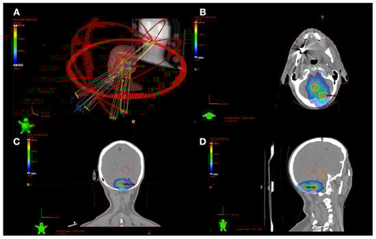 - Audet, C.; Poffenbarger, B.A.; Chang, P.; Jackson, P.S.; Lundahl, R.E.; Ryu, S.I.; Ray, G.R. Evaluation of volumetric modulated arc therapy for cranial radiosurgery using multiple noncoplanar arcs. Med. Phys. 2011, 38, 5863–5872. [Google Scholar] [CrossRef] [PubMed]