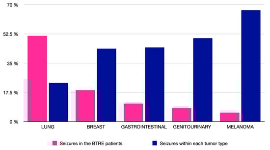 - Puri, P.R.; Johannsson, B.; Seyedi, J.F.; Halle, B.; Schulz, M.; Pedersen, C.B.; Kristensen, B.W.; Poulsen, F.R. The risk of developing seizures before and after surgery for brain metastases. Clin. Neurol. Neurosurg. 2020, 193, 105779. [Google Scholar] [CrossRef]