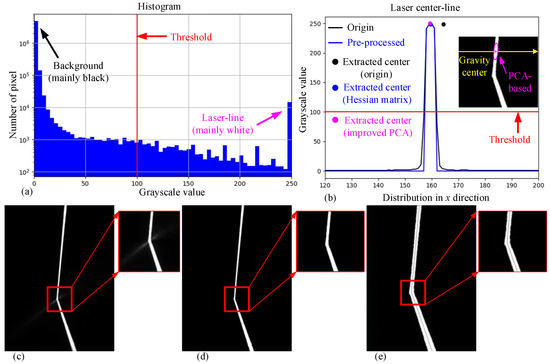 - Li, Y.; Zhou, J.; Huang, F.; Liu, L. Sub-Pixel Extraction of Laser Stripe Center Using an Improved Gray-Gravity Method. Sensors 2017, 17, 814. [Google Scholar] [CrossRef] [PubMed]