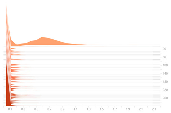 The scale factor of each BN layer of the YOLOv4-MobileNetv3 network before and after pruning is shown in Figure 7 and Figure 8. It can be seen that after the sparse training is completed, the coefficient is concentrated around 0, which means that the sparse training is saturated. The output of a channel close to 0 approximates a constant and can be clipped.