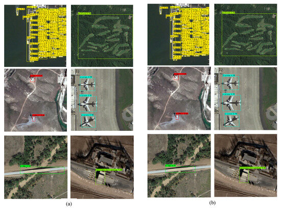 We use the optical remote sensing image dataset DIOR created by Li et al. of Northwestern Polytechnical University to evaluate the performance of the algorithm model [52]. The DIOR dataset is a large-scale optical remote sensing image dataset, including 23,463 images with a size of and a resolution ranging from 0.5 m to 30 m. There are 192,472 instances in total, covering 20 object categories.The images in the DIOR dataset cover a span of several years, capturing a wide range of imaging conditions, weather variations, and seasons. This diversity ensures that the dataset provides a representative collection of remote sensing data. In our experiments, 80% of the images in the DIOR dataset are selected as the training set, along with 10% for the validation set and 10% for the test set. Figure 9 shows some examples of images from the DIOR dataset. Sample images of golffield, vehicle, trainstation, chimney, groundtrackfield, airplane, stadium, tenniscourt, storage tank, ship, windmill and airport are shown in (a) to (l), respectively.