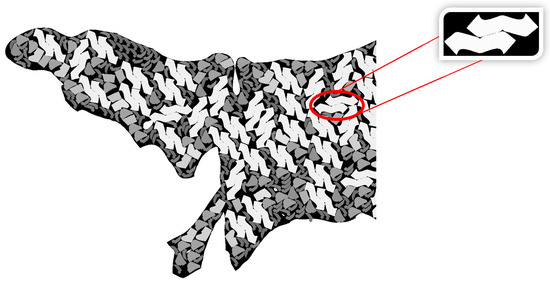 Sample of the item movements during the repair process. The black area represents the material, the white area represents the items, and the gray area represents the overlaps.