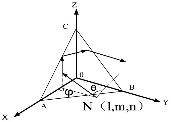 where is the unit vector representing the magnetic field direction, while and are the unit and distance vectors from the incident point to the origin, is the amplitude, and d is the distance vector from the incident point to the origin. Let , and be the unit vectors along the X, Y and Z axes, respectively. Subsequently, the unit vectors and can be obtained as follows:
