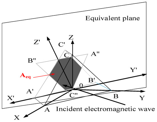 In order to simplify the RCS calculation of complex structures, the RCS of the variable corner reflector can be calculated only by obtaining the shape of the “equivalent aperture”. Subsequently, the shape can be integrated to obtain its area , which is determined by regional projection.
