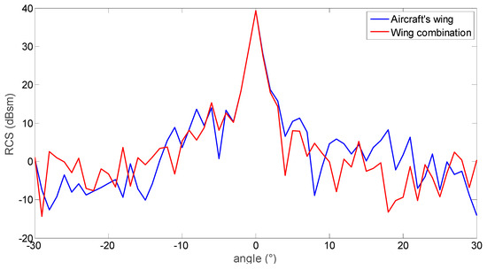 An aircraft’s RCS is mainly composed of three parts: sharp angle RCS distribution characteristics, stationary spatial distribution region, and some fluctuations caused by multiple scattering. It becomes very complicated to directly simulate the entire horizontal 360° space region of an aircraft. Therefore, the typical characteristics of the aircraft’s horizontal position, including nose, wing and tail, are described in the following. The design of these three parts can help to effectively realize the target drone simulation [29].