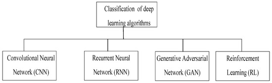 Deep learning algorithms fall into the following four main categories: convolutional neural networks, recurrent neural networks, generative adversarial networks, and reinforcement learning networks. The convolutional neural network includes a convolutional layer, a pooling layer and a fully connected layer, which is used to learn the features in the image and perform classification and detection. Figure 16 shows the classification of deep learning algorithms.
