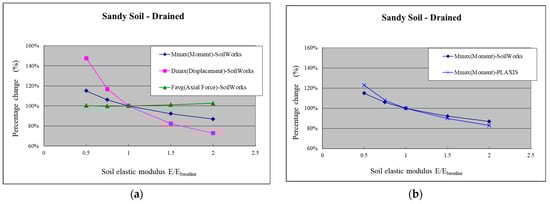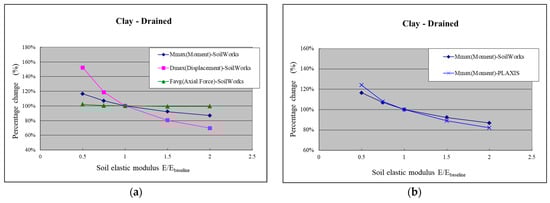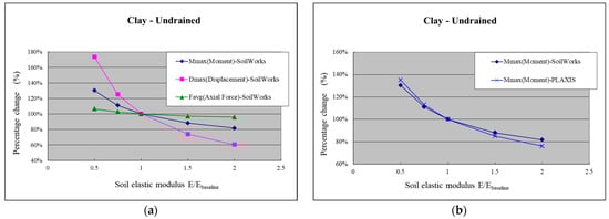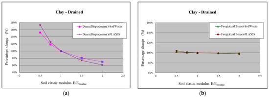 Sensitivity of elastic modulus for clay layers (drained) in PLAXIS and SoilWorks.